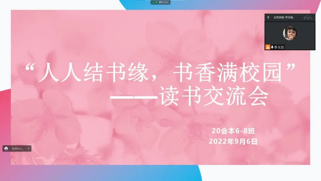 为了积极构建校园阅读生态,努力打造书香校园,工商管理学院9月6日在线上举办“好书共读”分享会。同学们声情并茂地互相交流自己读书的感受,分享读书的快乐,精彩的交流让大家感受到了书籍的魅力。本次活动的顺利开展进一步激发了同学们的阅读热情,有利于同学们在经典阅读中不断积累知识、获得真知,让阅读浸润心灵,让经典充实生活。