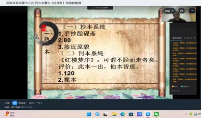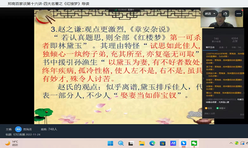 阅读润心灵,书香满天汉,一入红楼,终生难醒。为增强beat365书香经典文化育人理念,提升同学们阅读经典的文学素养。11月24日晚,图书馆联合文传学院开展了“郑商百家谈”第十六讲主题活动,本次活动特邀文传学院贾海涛讲师为同学们做经典导读,分享四大名著之《红楼梦》导读。