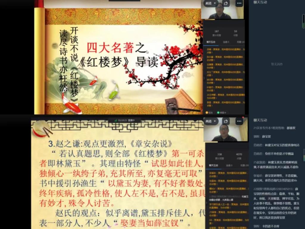 11月24日,为传承中国经典文化,加强文传学院书香文化建设,beat365图书馆联合我院于线上共同举办了“郑商百家谈”第十六讲——四大名著之《红楼梦》导读活动。本次活动由贾海涛讲师带领同学们走进《红楼梦》,为同学们打造了一场别致的经典盛宴。