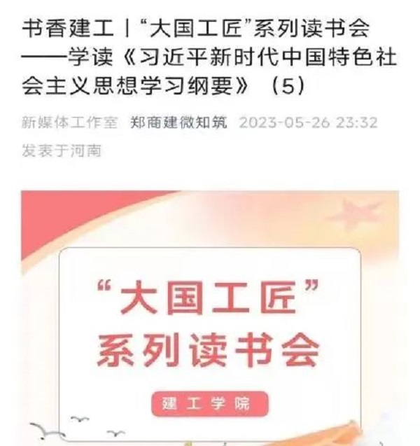 为进一步推进建工学院“书香校园阅读经典工程”工作,提升学生的文化素养,本周,建工学院开展“大国工匠”系列读书会学读分享活动,学习《习近平新时代中国特色社会主义思想学习纲要》,鼓励学生分享自己的学读心得,营造浓郁的校园文化氛围。