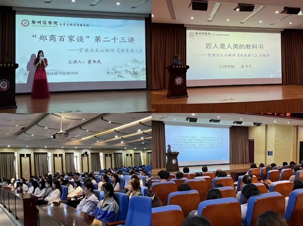 5月30日,为营造良好的阅读学习氛围,激发同学们读书求知的热情,文传学院开展“郑商百家谈”第二十三期——赏读《关东五十匠》分享会。本次分享会,霍华民教授向同学们讲解了《关东五十匠》以及匠人精神的独特之处,以“知行合一”四个字与同学们共勉,提倡同学们深度阅读并进行实践,让阅读内容真正内化于心。