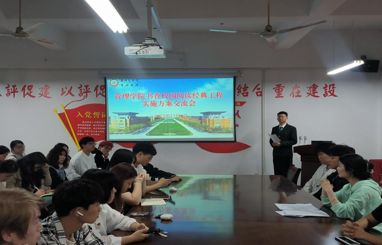 为提高学生的阅读热情和文化素养,提升学生的阅读能力和表达能力,逐步养成多读书、读好书、好读书的习惯,促进学生的全面发展,促进书香校园文化养成,管理学院于2023年11月2日,在2号教学楼2206会议室召开“书香校园阅读经典工程实施方案交流会”。