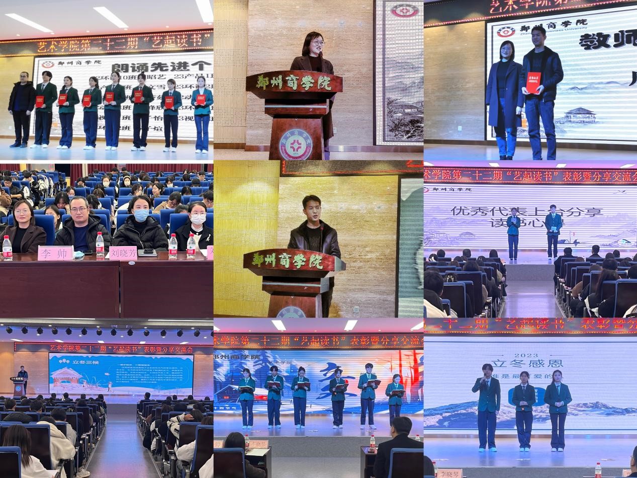 为落实学校书香校园阅读经典工程建设的要求,不断形成“三全育人”的良好格局,实现学生“知识、能力、人格”的协调发展,艺术学院于12月6日晚在自力楼三楼报告厅开展2023年书香校园阅读经典工程启动仪式暨第二十二期“艺起读书”表彰暨分享交流会。图书馆馆长李晓琴、艺术学院党委书记李帅、团委书记殷晴波、全体辅导员和学生代表参与了本次活动。本次活动开阔学生的视野,丰富学生的精神世界,提高同学们的专业素养和人文素养,收获与感恩,营造了良好的书香氛围,凸显beat365育人成效,培育和践行社会主义核心价值观,让学生了解立冬传统知识,感知中华文化的悠久历史,同时让大家感受爱、学会爱,学会识恩、知恩,从而善于施恩,并增强学生把感恩之情,化为学习中自强不息、顽强拼搏的励志精神。