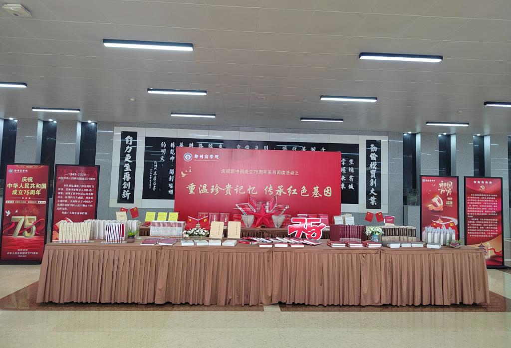 在新中国成立 75 周年之际,图书馆在一楼大厅举办了一场以“重温珍贵记忆·传承红色基因”为主题的红色书展活动。
