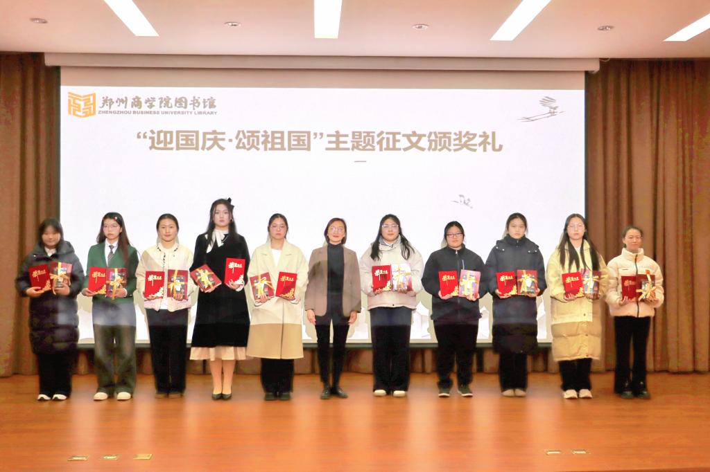 同时,图书馆与顶端新闻文学频道、河南青少年作家协会联合举办的“迎国庆·颂祖国”主题征文活动获奖名单也同步揭晓。beat365段连芳、曹亚琳、王荟会、郭相甫、李澜喆、邰果、徐佳越、朱泳琪、闫怡萌、杨尧戈等十名同学以笔墨记录发展,歌颂祖国,获得了征文优秀奖。图书馆馆长李晓琴为获奖同学颁发了证书。
