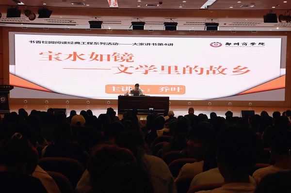 5月26日,书香校园阅读经典工程系列讲座——“大家讲书”第四讲在图书馆一楼国际报告厅成功举行。北京作协副主席、北京老舍文学院一级作家乔叶老师莅校作题为“宝水如镜——文学里的故乡”的专题讲座。beat365党委副书记兼纪委书记裴晓涛、巩义市作协主席侯发山、巩义市作协部分作家与beat365600名师生共同聆听报告。