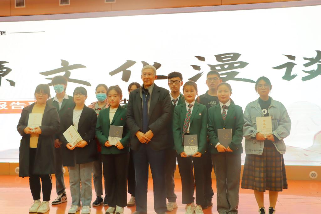 随后,李佩甫主席将“康百万”这一豫商的成功案例,与晋商、徽商的发展进行对比分析,指出“仁义礼智信”等儒家思想在维护中原文化秩序中发挥重要作用,也针对“给予与索取”“金钱与贫穷”“人智与自然”谈了自己的看法,引导同学们去思考与探索。