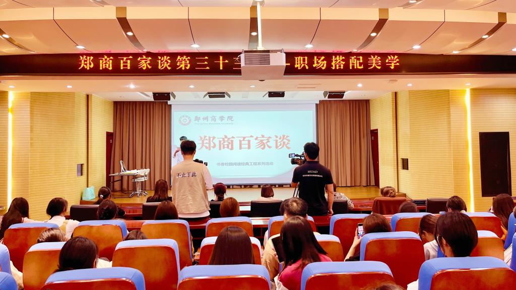 10月15日下午,郑商百家谈第33讲“职场穿搭美学”主题讲座在图书馆五楼学术报告厅成功举办。此次讲座邀请郑州胭脂绒文化传播有限公司创始人张瑢女士莅校交流,指导师生通过肤色色彩判断,帮助个人快速建立起适宜的穿搭风格。全校200余名师生参与交流。