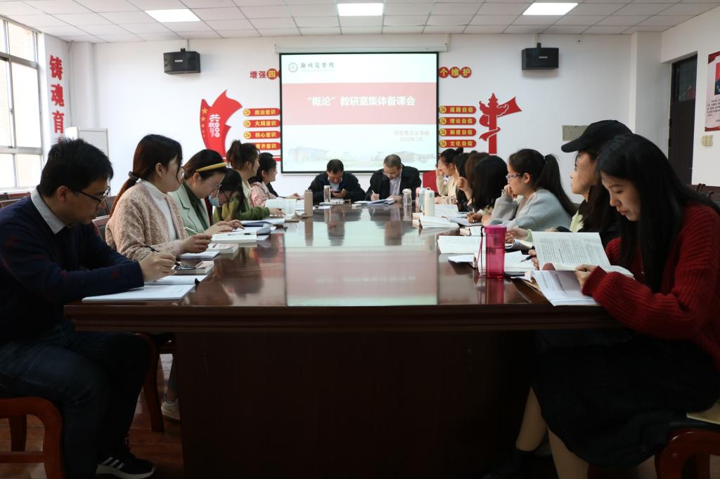 为发挥教研组集体备课优势,集思广益,博采众长,进一步提高教师教育教学水平,促进教师之间的合作研讨交流,3月11日,马克思主义学院概论教研室组织召开了集体备课会。会议由教研室主任录柯主持,教研室全体教师参加会议。