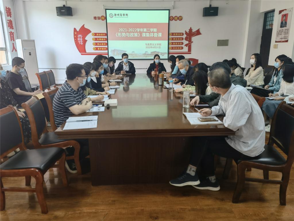 为进一步提高形势与政策课的课堂教学质量,马克思主义学院于4月21日下午在会议室召开第四次形势与政策课集体备课会。此次集体备课会由马院党委书记牛晓锋主持,全体无课教师参加。