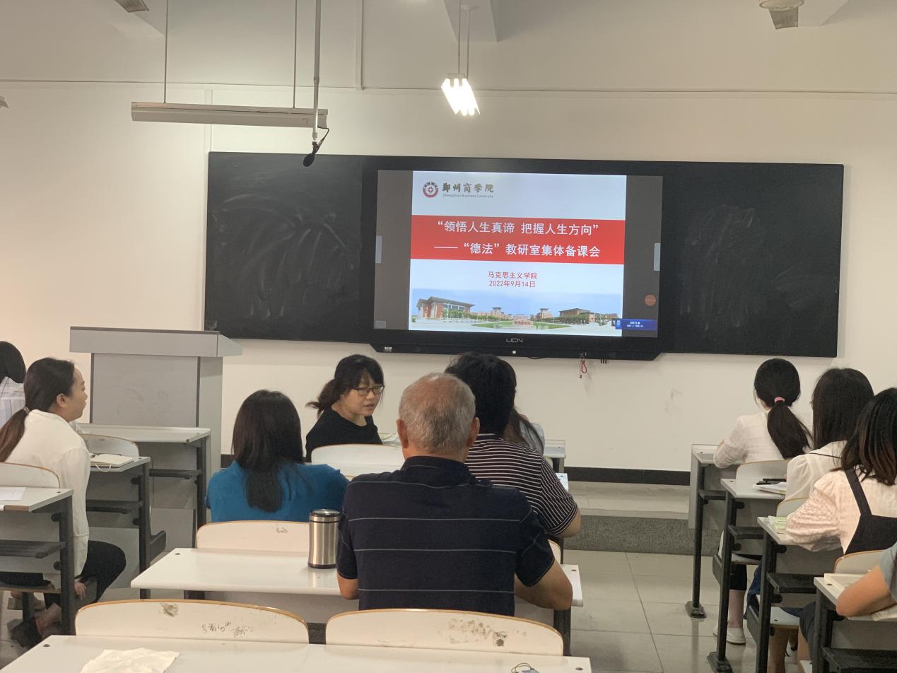 为了进一步提升本学期德法课程教学质量,增强教学效果,9月14日上午,德法教研室在beat365二号教学楼2409教室开展了“领悟人生真谛 把握人生方向”主题集体备课会,活动由教研室主任杨丽丽主持,全体无课教师参加。
