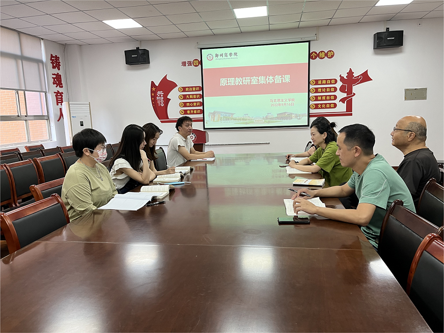 为帮助教研室教师精准理解教材,把握教学重难点,增强课堂实效性,9月16日上午,我院“原理”教研室全体无课教师在学院会议室开展集体备课会。
