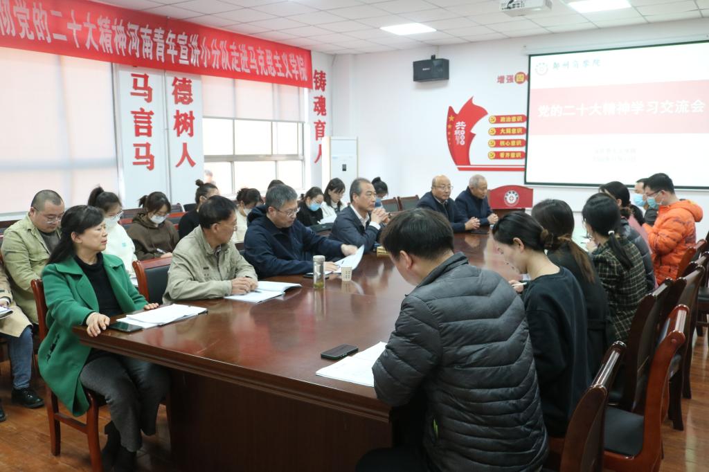 为深入学习宣传贯彻党的二十大精神,推动党的二十大精神更好地融入思政课教学,11月17日下午,校党委在我院召开“党的二十大精神融入思政课”交流会议,校党委书记马书臣、党办主任邢坤及我院全体思政课教师参会,会议由我院院长张党诺主持。