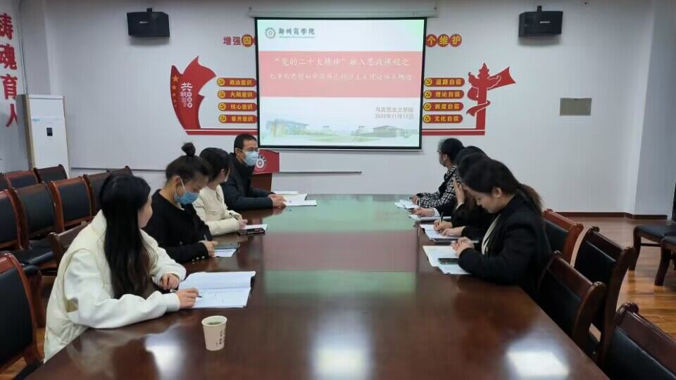 为更好地将党的二十大精神融入“概论”课课堂,“概论”教研室于11月17日下午在我院会议室召开了党的二十大精神融入课程教学专题备课会。本次会议由教研室主任录柯老师主持,全体无课教师共同参加了本次会议。