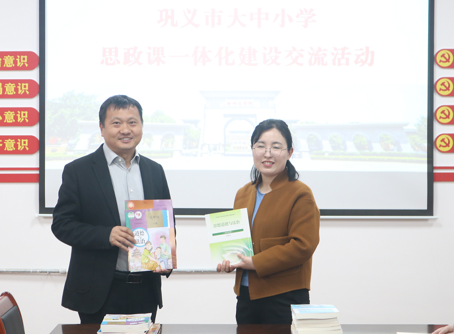 会议伊始,李局长与张院长进行了大中小思政课教材共享仪式。“立国根本在乎教育。教育根本,实在教科书。”思政课一体化建设离不开思政课教材一体化的建设,教材的共建、共享能够有效打破各学段之间的固有篱笆,实现各学段教学内容和目标的循序渐进、纵向贯通。