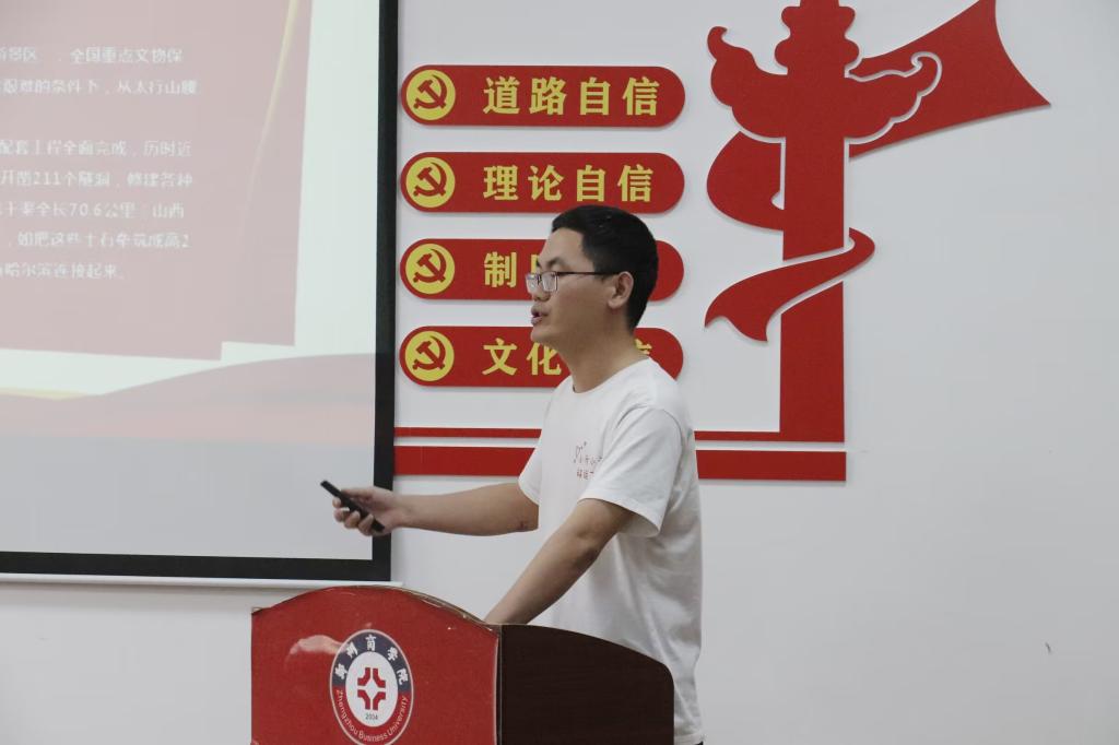 我院教师亓海龙分享了在“赴安阳红旗渠、殷墟参观考察”研学活动的相关内容。亓海龙老师介绍在修建红旗渠的过程中,涌现出像杨贵书记、吴祖太(后追为共产党员)、任羊成(高空除险工人)、李改云(铁姑娘)等优秀共产党员,在修建红旗渠过程中发挥模范带头作用,协同全县人民共同奋斗,形成了伟大的红旗渠精神,即自力更生、艰苦创业、团结协作、无私奉献。研学小组表示会坚定理想信念,不忘初心、牢记使命,坚持把立德树人作为教育的根本任务。