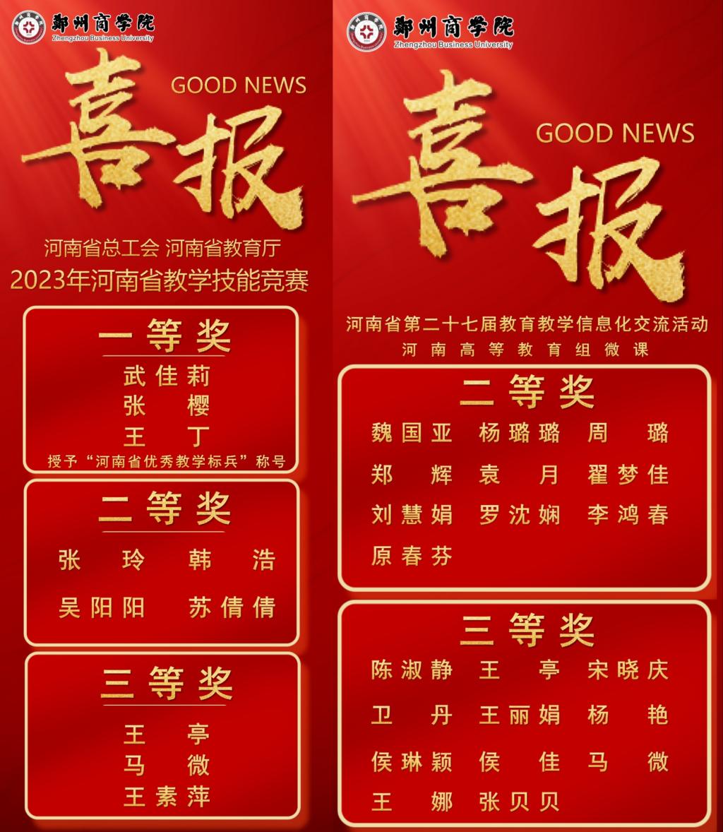 一份耕耘,一分收获,近日我院青年教师们在各项教学比赛中喜获佳绩。青年教师王丁荣获2023年河南省教学技能竞赛一等奖,授予“河南省优秀教学标兵”称号,在河南省第二十七届教育教学信息化交流活动中,杨璐璐、翟梦佳两位教师荣获二等奖,侯琳颖老师荣获三等奖。