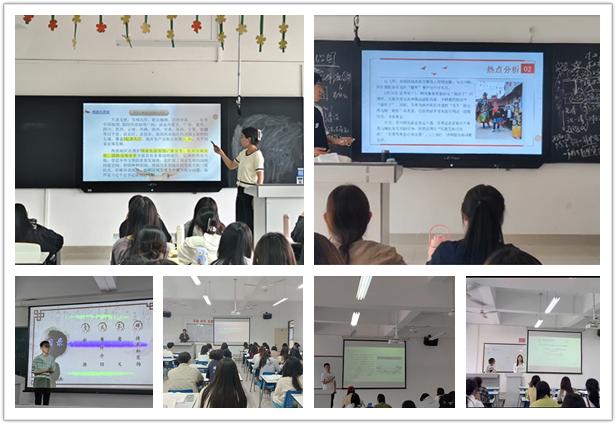《毛泽东思想和中国特色社会主义理论体系概论》课开展“时政聚焦”活动,各小组联系近期国际国内热点、焦点问题,结合课程理论知识,选取合适题目、搜集相关资料、制作PPT,教师在幕后全程把关,尤其在选题、案例、理论应用和价值引领等方面给予全方位指导,增强学生利用马克思主义立场、观点和方法分析问题和解决问题的能力,深化对课程理论知识的理解,坚定“四个自信”。