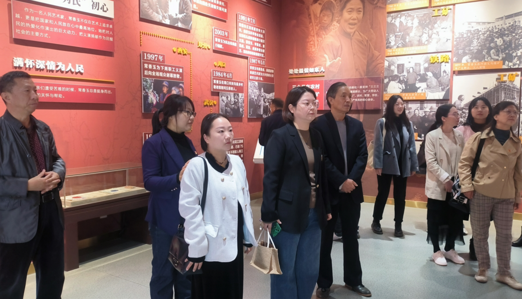 活动开始前,支部书记杨丽丽带领大家学习了习近平总书记在庆祝中华人民共和国成立75周年招待会上的讲话以及《大力弘扬伟大爱国主义精神,把强国建设、民族复兴伟业不断推向前进》这篇文章,提醒大家要让爱国主义成为自己的坚定信念和精神依靠。紧接着,大家怀着无比崇敬的心情依次参观了“奉献艺术”“心系人民”“爱党爱国”“德艺双馨”“香玉精神”五大展区和常香玉故居,跟随讲解员一起走进“豫剧皇后”常香玉的艺术人生,认真聆听了常香玉大师艰辛学艺的艺术人生、为人民而唱、为百姓而唱的艺术成就以及忠于人民、爱党爱国的典型事迹,感悟一代大师视艺术为生命,对民族戏曲艺术的炽热情感。