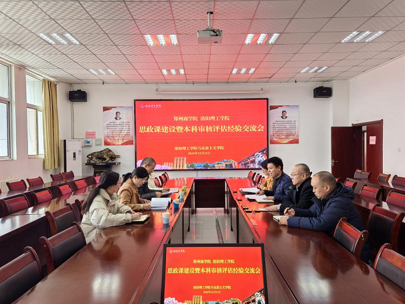 为进一步加强思政课建设,落实立德树人根本任务,更好推动2025年本科教育教学审核评估准备工作,促进我院教育教学工作高质量发展,12月11日上午,我院院长张党诺与录柯、仇小蕊、刘雨萌4人一行赴洛阳理工学院马克思主义学院学习借鉴思政课建设及本科教育教学审核评估工作经验,洛阳理工学院马克思主义学院院长苗国强、副院长申艳红、副院长朱继刚及“概论”教研室主任师学伟参加了座谈。