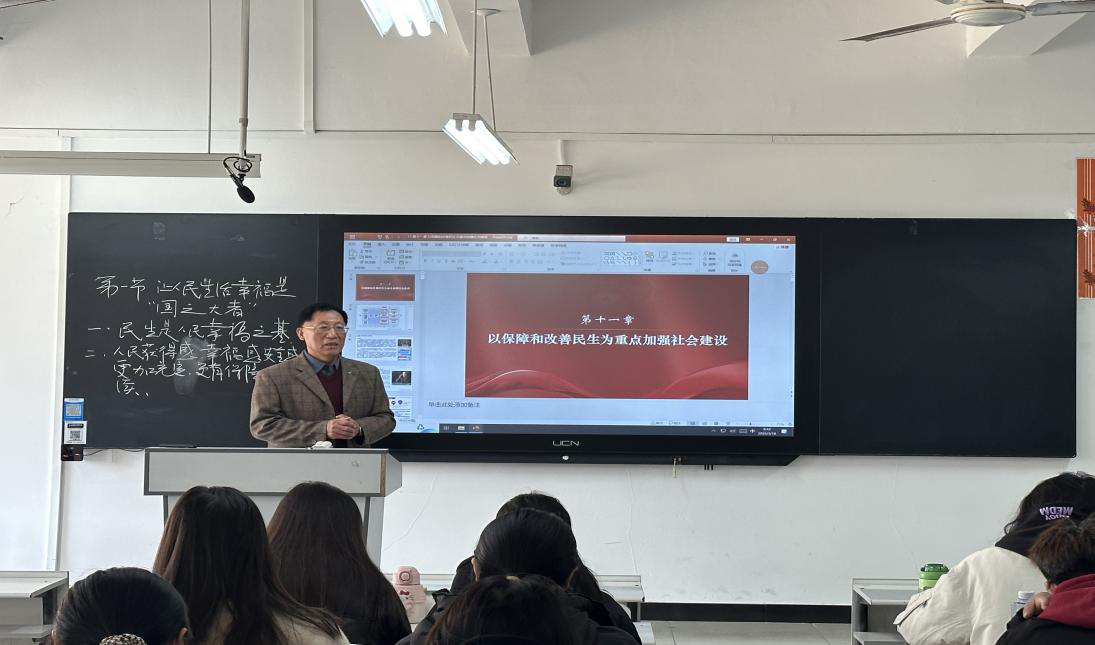为深入学习贯彻习近平新时代中国特色社会主义思想和党的二十届三中全会精神,充分发挥银龄教师在教育教学中的示范引领作用,促进教育教学经验的传承与交流,3月18日,“习近平新时代中国特色社会主义思想概论”教研室组织开展银龄教师示范课活动,由李义军教授进行课堂教学展示,教研室全体无课老师随堂观摩学习。