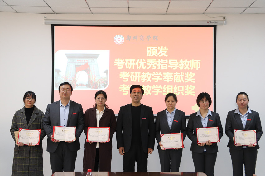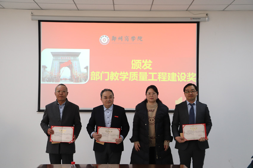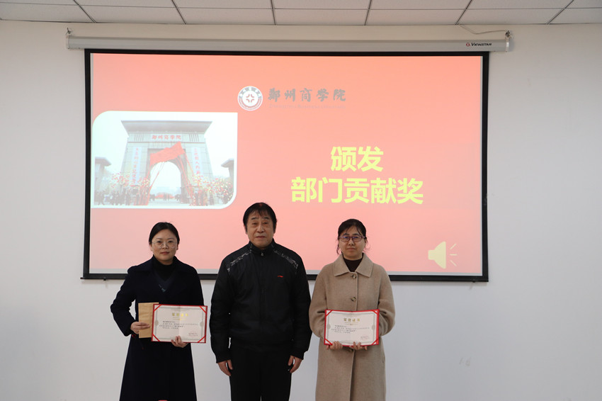 会议伊始,王书记介绍了2021年通识中心各项工作的完成情况及取得的成绩。紧接着,与会领导和嘉宾为2021年度在教育教学和专项工作中表现优秀的教师颁发了荣誉证书和奖金,并合影留念。师求恩副校长为考研优秀指导教师、考研教学奉献奖、考研教学组织奖颁发了证书和奖金;张艳丽副处长为高等数学、微积分和大学物理课程组颁发了部门教学质量工程建设奖;周国强教授为通识教育教研室,中职教育教研室颁发了部门贡献奖,闫蕾蕾主任为田咏梅、许琼艺等5位同仁颁发了部门先进工作者荣誉证书。