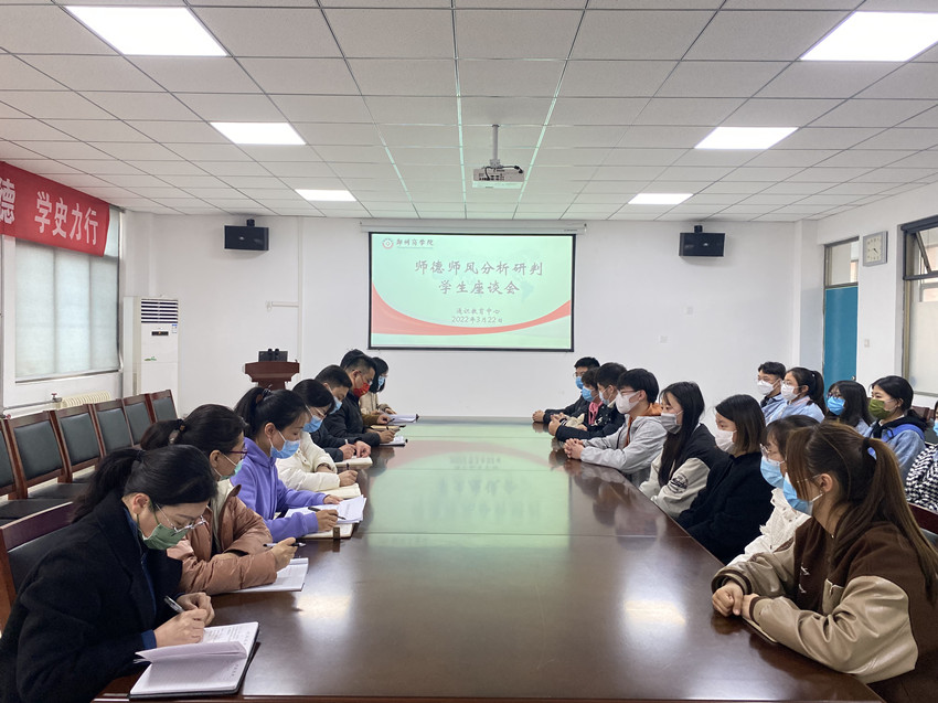 会上,刘晓杰老师为与会师生介绍了此次座谈会的主要目的,希望同学们能够如实反映beat365教师在教育教学过程中存在的师德失范行为。