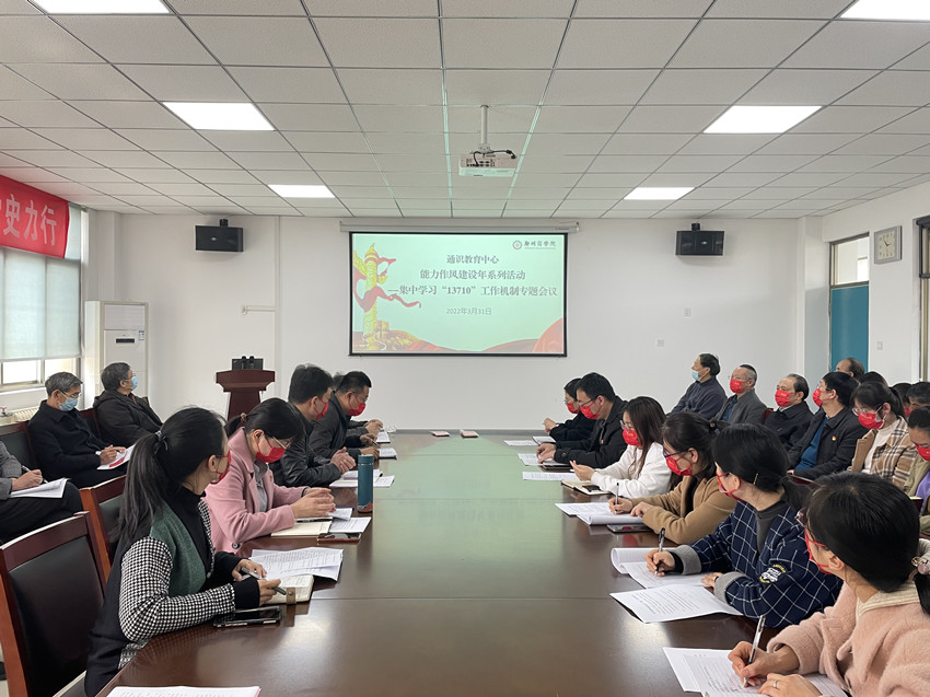 为推动实施以“13710”工作制度为牵引的效能革命,3月31日下午,通识教育中心行政秘书兼团委书记张道蒙带领与会教师在艺术楼204会议室集中学习“13710”工作制度。