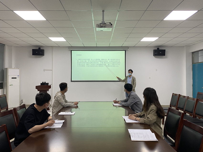 首先,每位教师轮流进行了说课,张弘扬老师的说课内容是《微积分基本定理》,王超老师的说课内容是《平面及其方程》;每位教师说课的时候其余教师都在认真聆听。随后,各位教师针对其他教师的说课进行了意见交换,相互讨论交流了看法。最后,各位教师对各自上课的情况进行了交流,对于授课的问题和技巧进行了讨论。
