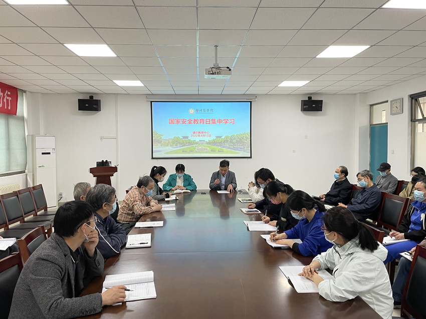 为全面落实总体国家安全观,4月12日,通识中心在艺术楼204会议室召开国家安全教育专题学习会,通识中心主任闫蕾蕾、党委书记王花磊及全体无课教师参加会议。