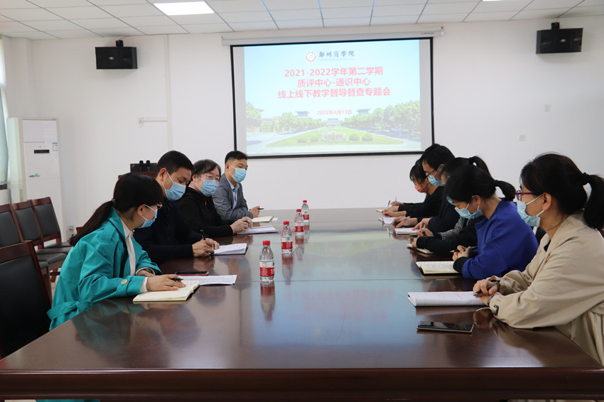 为了更好的了解近期我中心各门课程线上线下教学情况,我中心于4月13日下午在艺术楼204召开质评中心—通识中心线上线下教学督查专题会,质评中心主任张晓辉、校级督导组组长姚旭东、通识中心主任闫蕾蕾、党委书记王花磊及通识中心质量监督员罗丹、各教研室主任参加了本次专题会。