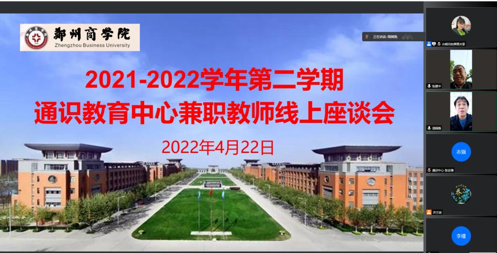 为深入贯彻全国教育大会精神,落实河南省教育厅“课堂教学质量提升年专项计划”工作要求,搭建质评中心、兼职教师与通识教育中心良好沟通的平台,4月22日下午,我中心通过腾讯会议的形式召开兼职教师座谈会。质评中心督导周国强教授、通识中心教学秘书刘晓杰老师以及全体兼职教师参加了会议,会议由通识中心质量监控督导员罗丹主持。