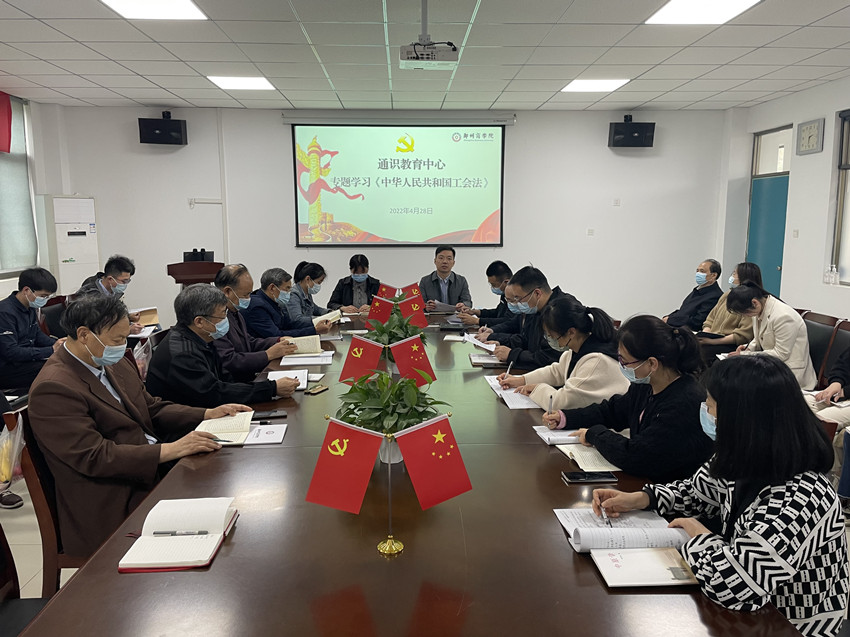 为深入学习贯彻新修订的《中华人民共和国工会法》,扎实推进工会工作法治化建设,维护教职工合法权益,切实提高教职工知法懂法的能力和水平,4月28日下午,通识中心在艺术楼204组织全体无课教师学习新修订的《中华人民共和国工会法》(以下简称《工会法》),本次学习由党委书记王花磊主持。