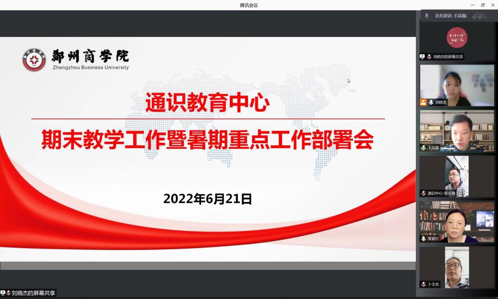 为总结本学期的教学工作,明晰各教研室暑期工作安排及做好下学期的工作初步部署,6月21日上午,我中心在线上召开了期末教学工作暨暑期重点工作部署会。会议由通识中心主任王花磊主持,全体教研室主任和专项工作负责人参加了此次会议。