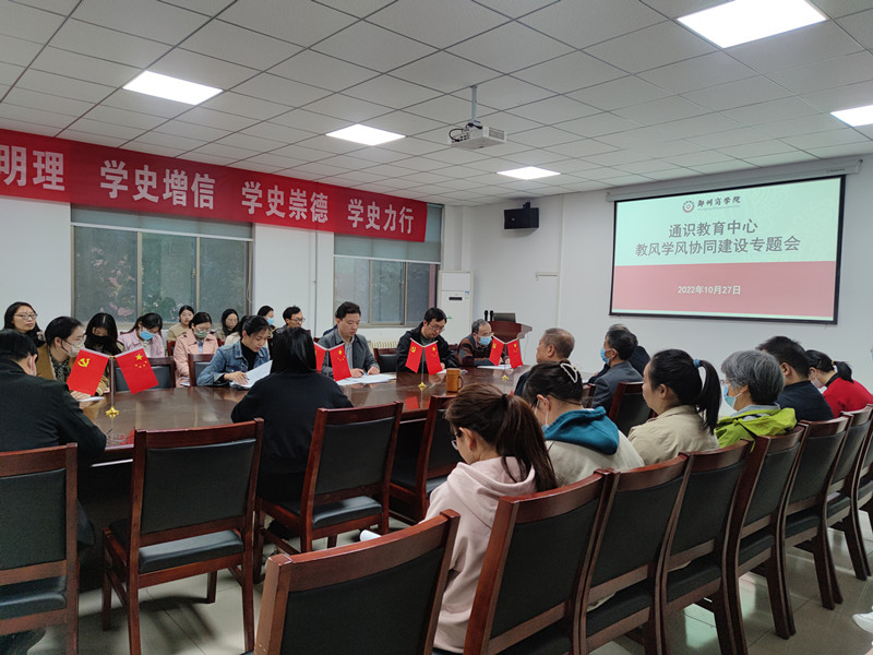 为深入推进beat365唯一官网教育教学综合改革,通识中心全体无课教师在2022年10月27日下午参加部门教风学风协同建设专题会,贯彻落实教风学风协同建设专题会。