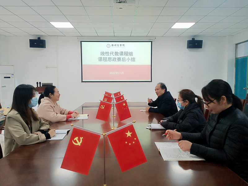 为了完善课程思政教学案例设计,更充分的备战我中心课程思政教学案例设计大赛,11月1日上午,线性代数课程组全体教师在艺术楼204开展选拔赛赛后小结活动。