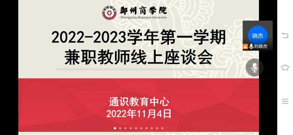 为了进一步规范线上教学期间的教学管理,反馈线上教学以来出现的各种情况,我中心于11月4日下午通过腾讯会议召开了2022-2023学年第一学期兼职教师座谈会,质评中心教学督导周国强教授、通识中心教学秘书刘晓杰科长、教学质量监控督导员刘慧娟老师、各教研室主任和全体兼职教师参加了此次会议,会议由大学数学教研室主任白明月主持。