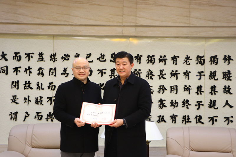 吴泽强校长为任军锋教授颁发客座教授聘书
