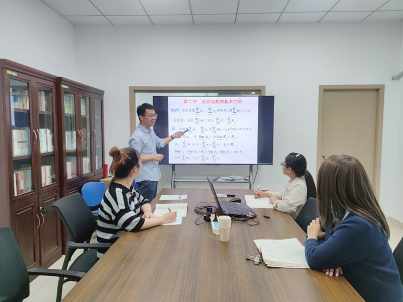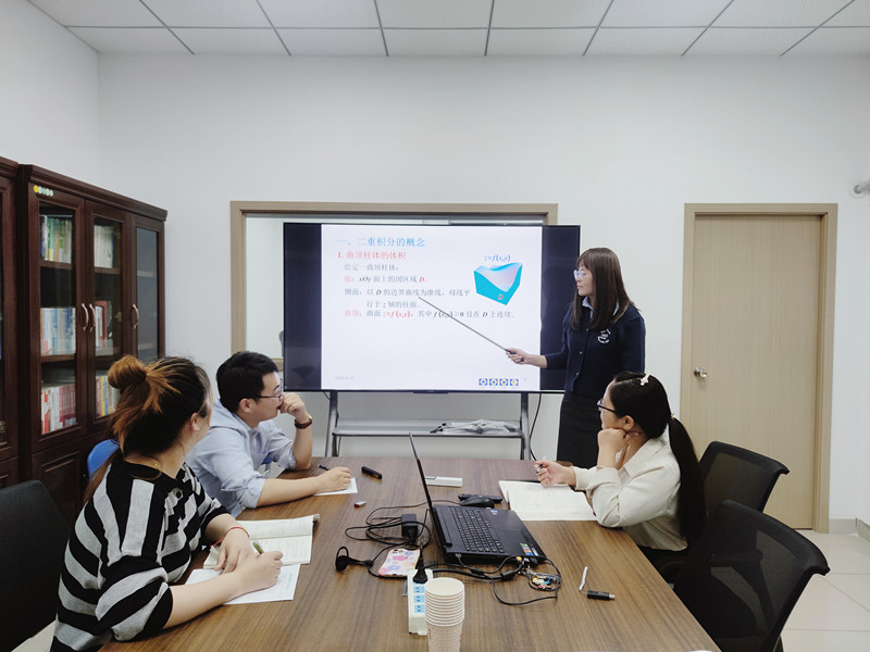 活动中,四位新入职教师轮流进行微课展示。秦思梦老师讲解了《直角坐标系下二重积分的计算》,王怡涛老师讲解了《空间直线及其方程》,符营营老师讲解了《空间平面及其方程》,彭先奎老师讲解了《无穷级数的基本性质》。每位教师讲授时,其余教师都对其优点及不足之处进行了记录,展示结束后,各位老师针对其他教师的微课分享积极提出自己的建议,同时针对大家的共性问题进行了探讨。