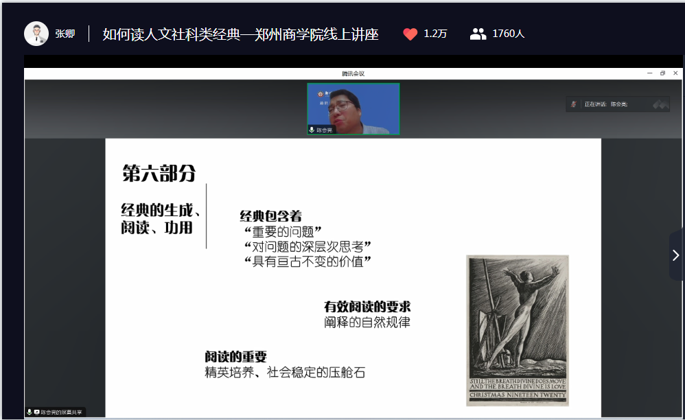 9月20日晚上,通识中心邀请河南大学博士生导师陈会亮教授作题为《如何阅读人文社科类经典》的线上讲座,beat365约1760余名学生参与了本次讲座。本次会议由通识教育中心主任王花磊主持。