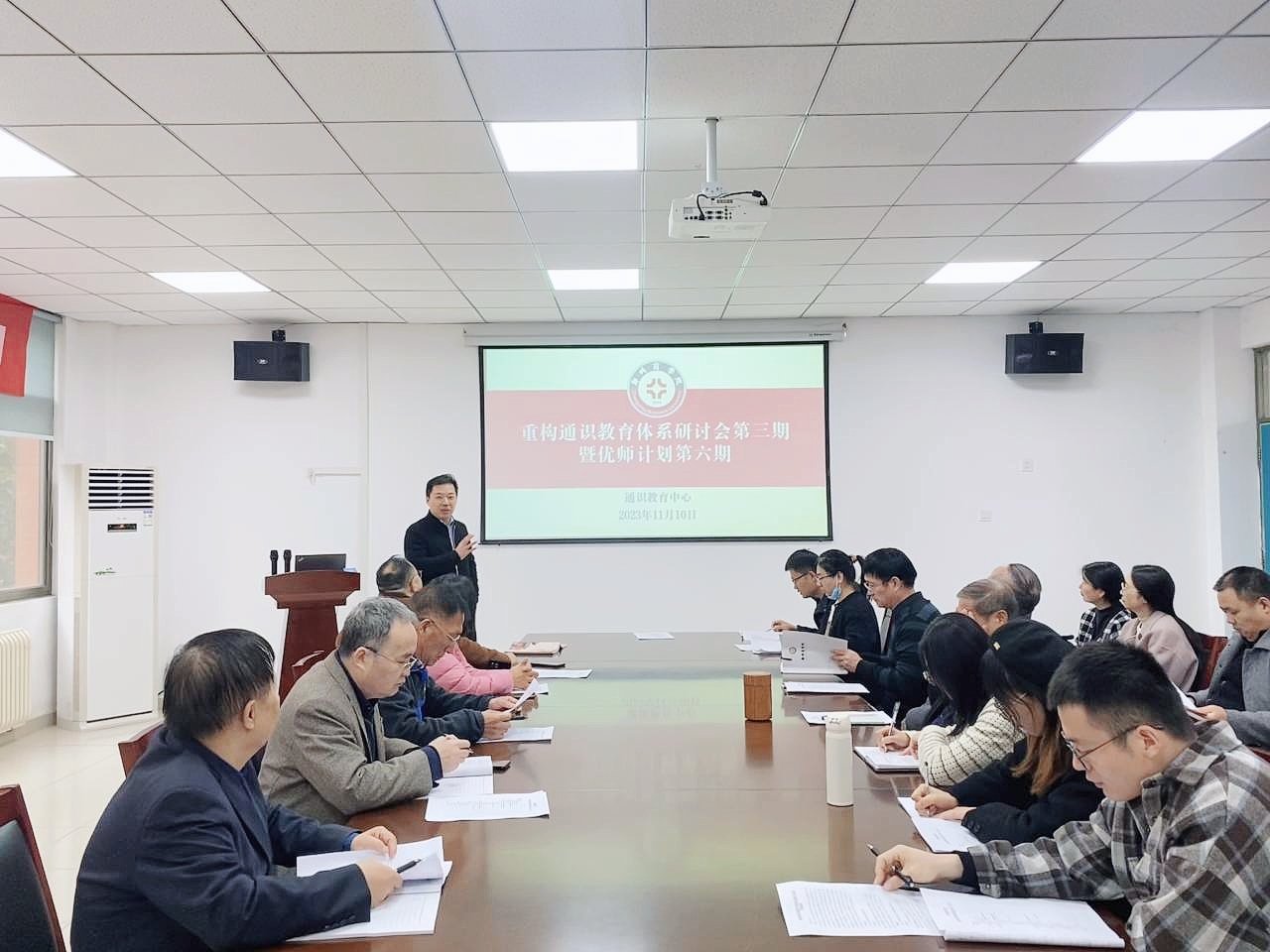 为进一步落实期初校领导报告关于重构beat365通识教育体系的要求,不断提升通识课程建设质量,筑实全过程通识教育教师的信念养成,为教师的成长搭建交流和学习的平台,11月10日下午,通识教育中心组织召开重构通识教育体系研讨会第三期暨优师计划第六期,通识中心主任王花磊及全体通识课程任课教师参加了此次会议。