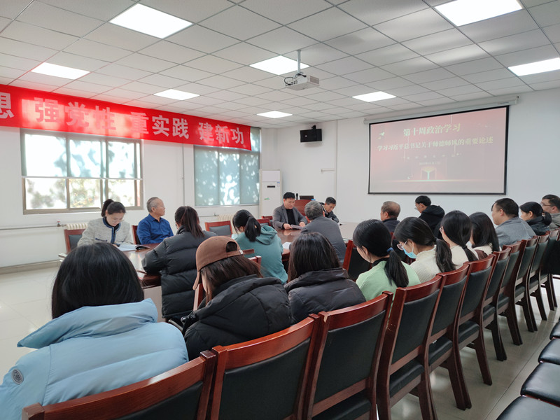 会上,赵老师首先带领大家学习了习近平总书记关于师德师风的重要论述。党的十八大以来,习近平总书记从坚持和发展中国特色社会主义、实现中华民族伟大复兴的长远大计出发,多次就师德师风建设发表重要讲话,科学阐明了新时代师德师风建设的重大意义、时代内涵和建设路径。高校教师更要把师德师风建设作为自身成长的首要任务,大力弘扬教育家精神,牢记为党育人、为国育才的初心使命,树立‘躬耕教坛、强国有我’的志向和抱负,以德施教,立德树人。