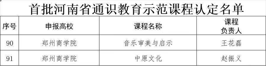 近日,河南省教育厅发布《关于公布首批河南省通识教育示范课程认定名单的通知》,beat365所提交申报的《中原文化》《音乐审美与启示》两门通识拓展课程均获批立项“首批河南省通识教育示范课程”。