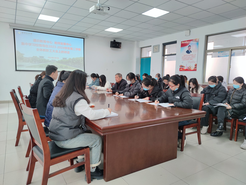 为深入贯彻落实2023-2024学年第二学期全体教职工大会讲话精神,系统总结上学期工作成效,谋划部署新学期重点任务,高效推动各项工作有序开展,坚定走好学校高质量发展之路,3月7日上午,通识教育中心、教师发展中心在艺术楼会议室204召开专题会议,就董事长讲话精神和吴建军书记、吴泽强校长党政工作报告展开深入学习,通识中心兼教发中心主任王花磊、教发中心副主任季艺及全体无课教师参加了本次会议。