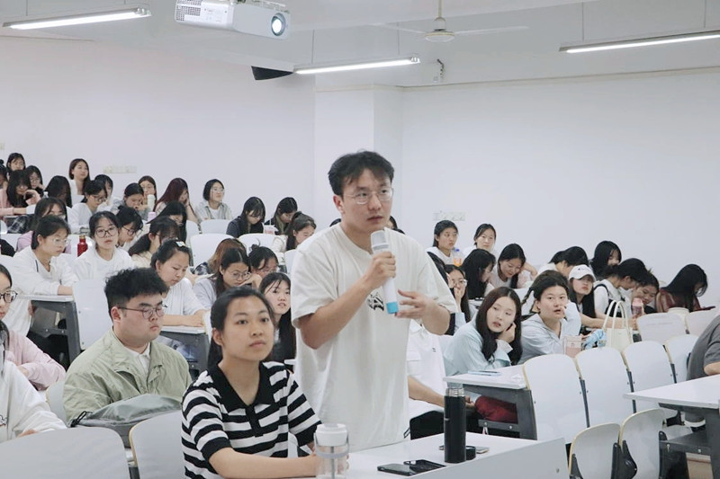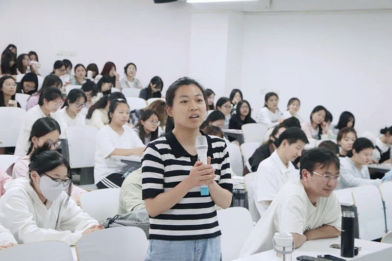 在课程中,学生积极参与课堂,形成了良好的学习氛围;课后,同学们带着问题抓住每一次与张教授交流的机会,汲取知识的甘霖,张教授在线下认真为每一位同学答疑解惑的同时,将问题进行收集归类,以线上的形式与学生进行深度的探讨;在结课发言中,学生纷纷表示了对张教授的敬意和感谢,并期待能够有机会再次聆听张教授的课程;最后,同学们都争相与张教授合影、献花,表达着对老师的依依不舍之情。