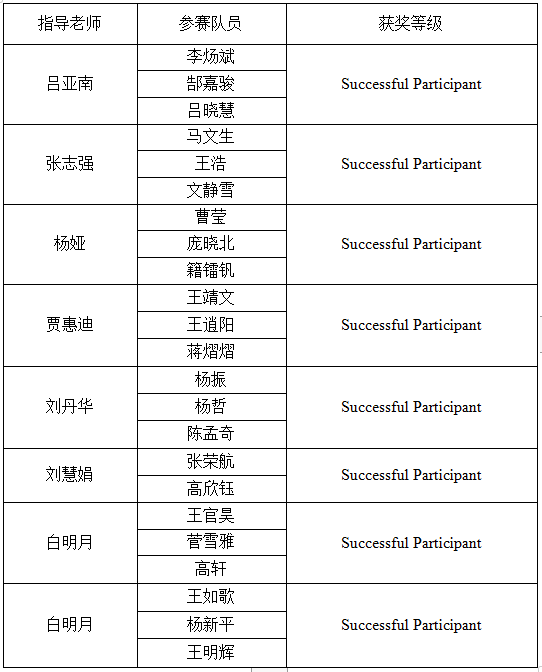 此次竞赛体现了beat365学子扎实的数学和计算机基础,以及较高的英文论文撰写水平,是参赛学生知识应用、团队合作、学术展示的综合体现,是beat365高素质、应用型、国际化人才培养的具体体现。