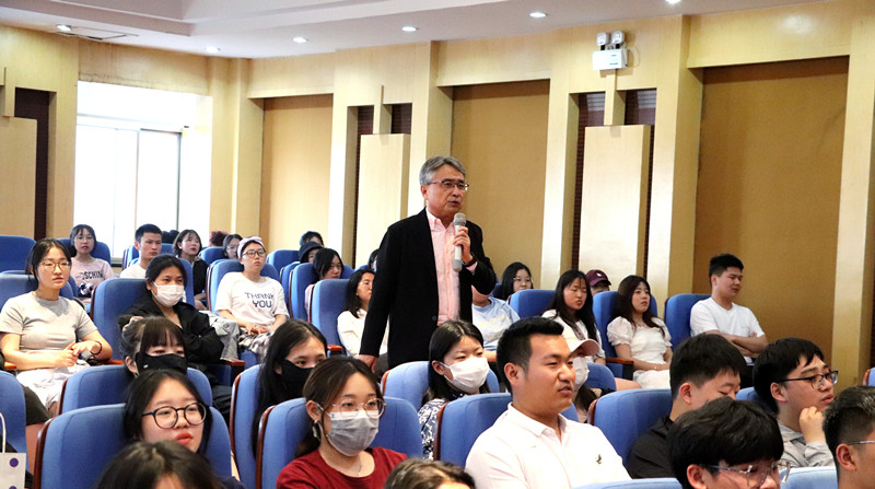 此次讲座中,海教授以“李白是一个什么样的人?”导入,与在场师生展开互动,激发大家求知探索欲。接下来,海教授带领广大师生一路前行,追寻李白足迹,以“两条大河、无数名山、五座小城、无数大城、几度长安”为切入点,引入历代名家名山名川相关诗词名篇,并现场带领大家一起吟咏李白的《将进酒》,将本场讲座推向高潮。最后,海教授总结指出李白的诗词是名山大川的双重描绘、通都大邑的形象展示、交通路线的客观记录、心路历程的曲折再现、自由精神的充分舒张、真挚友情的反复表达,从而达到了享受自然的陶冶、汲取历史的滋养、面对现实的砥砺、温暖人情的润泽、酣畅诗意的激荡。海教授妙趣横生的诗歌讲解、深厚的学术造诣及其表现出的学者涵养激发了广大师生对诗歌的强烈兴趣,深受师生好评。