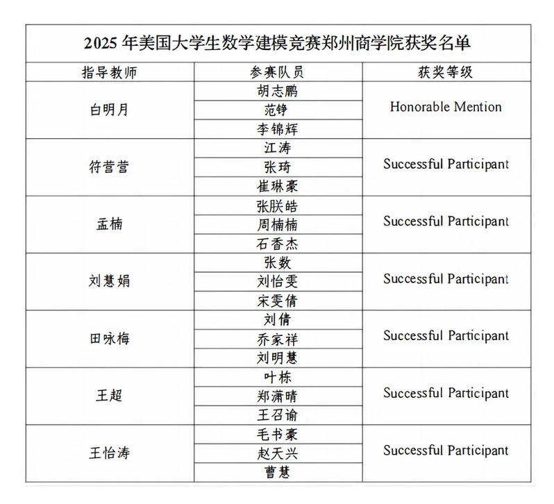 近日,2025年美国大学生数学建模竞赛(MCM/ICM)获奖名单揭晓,beat365再获佳绩。beat365共组织7支参赛队参加了该项赛事,全部获奖,其中1队获H奖,6队获S奖,充分展示了beat365教育教学成果。