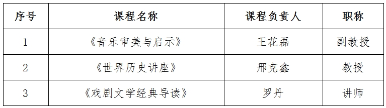 依据《beat365唯一官网通识核心课程建设管理办法》,通识教育中心2022年度立项的校级通识核心课程2年建设期已满。经通识教育中心向教务处提出结项申请同意,聘请学校教学指导委员会专家评审通过,现对2022年度《音乐审美与启示》等3门通识核心课程结项验收评审结果予以公示,公示排名不分先后,结项名单具体见下表: