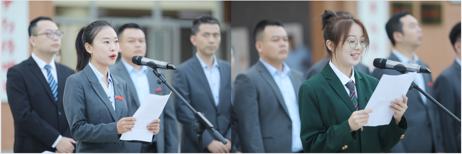 教师代表、会计学院辅导员朱赛楠,老生代表、工商学院高畅鸿分别作为师生代表进行发言;新生代表朗诵《新征程 新一步》。